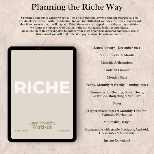 Planning the RICHE Way - Prayer & Scripting Digital Manifestation Workbook and Planner